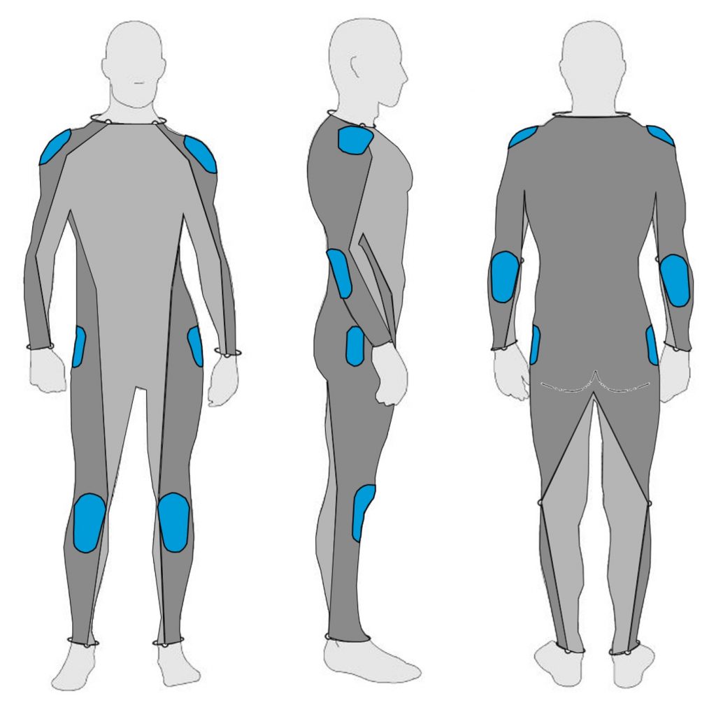 According to the standard, the zones of the human body at different risk in the event of a fall are divided into three zones (color-coded in the illustration).